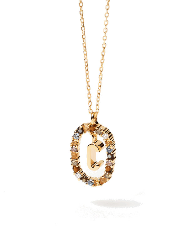 Collana c the new letters argento 925 placcata oro 18k con pietre semipreziose