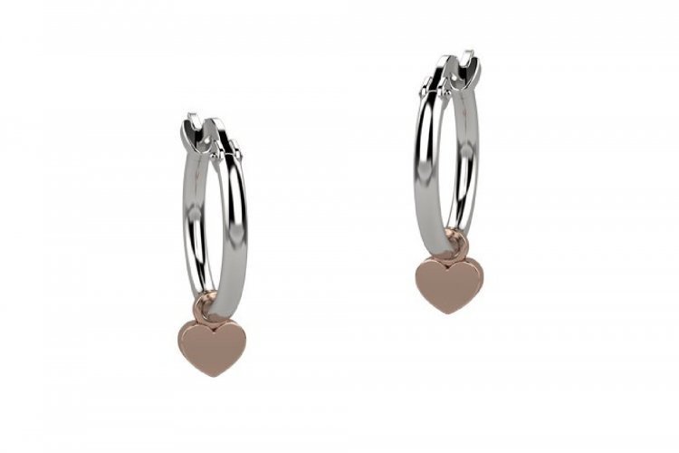 Graziosa coppia di orecchini a cerchio con charms placcato in oro rosa a forma di cuore