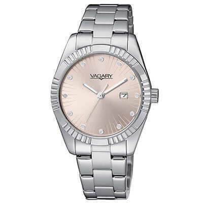 Cassa e bracciale in acciaio. Quadrante con 6 cristalli applicati. WR 5 bar.